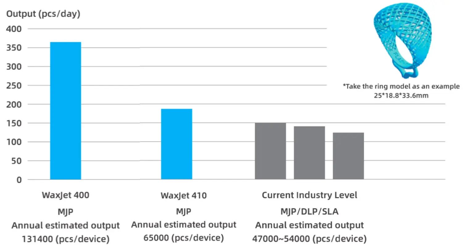 Are you in the market for a fast and high quality production 3D printer, suitable for 100% wax jewelry or investment casting patterns? When it comes to high performance, mold-free, cost-effective, and complex design pattern solutions for direct lost wax casting, specialized 3D printers have set the standard. However, achieving a balance between cost, quality, and efficiency is key. Below we've put together a quick comparison between leading high throughput wax 3D printers: the FlashForge WaxJet 400/510 and the 3D Systems ProJet MJP 2500W Plus/IC.